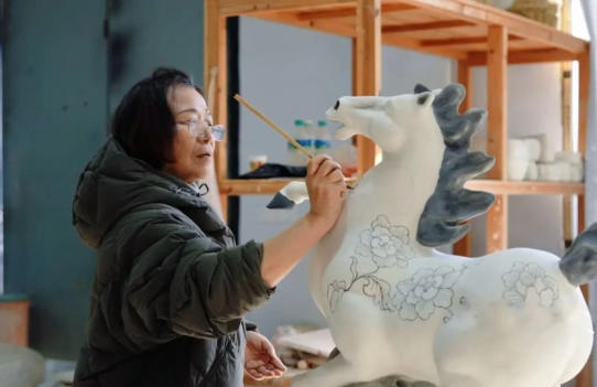 由曹春生主创、岳峻负责画面设计,於彩云、汪开潮等非遗代表性传承人分别负责手工装饰与题字,知名工匠游龙发等负责印坯、烧窑的创作生产团队,自1月29日起在浮梁县湘湖镇的润鼎陶瓷工坊昼夜赶工。面对大型陶瓷雕塑尺寸难控、易开裂、装饰复杂、烧制风险高等难题,团队群策群力,克服了一系列工艺难题,将创作生产时间压缩到最短。2月12日上午,4件作品顺利出窑,精选出的最优一件随即送京,最终亮相春晚舞台。 自2024年舞剧选段《瓷影》展现青白瓷风韵,到2025年祝贺“春节”申遗成功的“春碗”,再到今年的“福马迎春”,景德镇陶瓷文化已连续三年亮相央视总台春晚。这标志着千年瓷都在新时代的文化“再出发”——以春晚为支点,撬动从文化传承到产业升级、从品牌重塑到城市转型的全方位发展。 当晚,景德镇面向全球举行“除夕守岁·福马迎春”暨福马系列文创首发仪式,线上线下再掀陶瓷文化热潮。 编辑:陈万菡 校对:汪婧 一审:于杰 二审:庞志伟 三审:岳峻