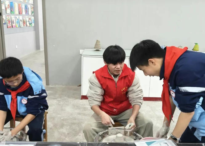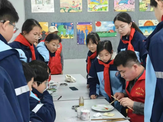 活动中,志愿者们从陶瓷历史源流、制作工艺演变,到器型设计、釉色调配等关键内容,以通俗易懂的语言、生动鲜活的案例,带领学生们沉浸式感受陶瓷艺术的独特魅力。团队通过釉上彩绘画现场演示、泥条盘筑与拉坯实践、互动问答等形式,让学生们直观触摸传统技艺的温度,深入理解陶瓷文化作为中华优秀传统文化重要组成部分的深厚底蕴与时代价值。